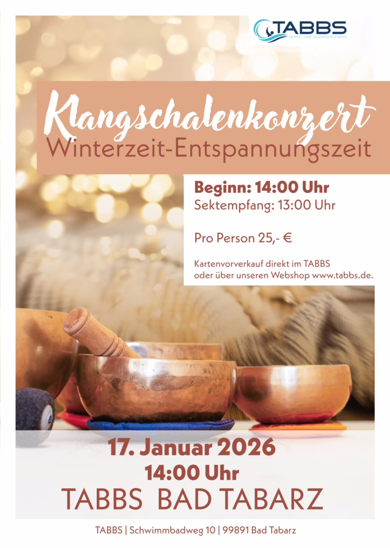 Erleben Sie im TABBS Bad Tabarz eine abwechslungsreiche Auswahl an Veranstaltungen, die Entspannung und Wissen vereinen. Genießen Sie wohltuende Klangschalenkonzerte, exklusive Saunanächte und informative Vorträge zu verschiedenen Gesundheitsthemen – alles in einer entspannten Atmosphäre.