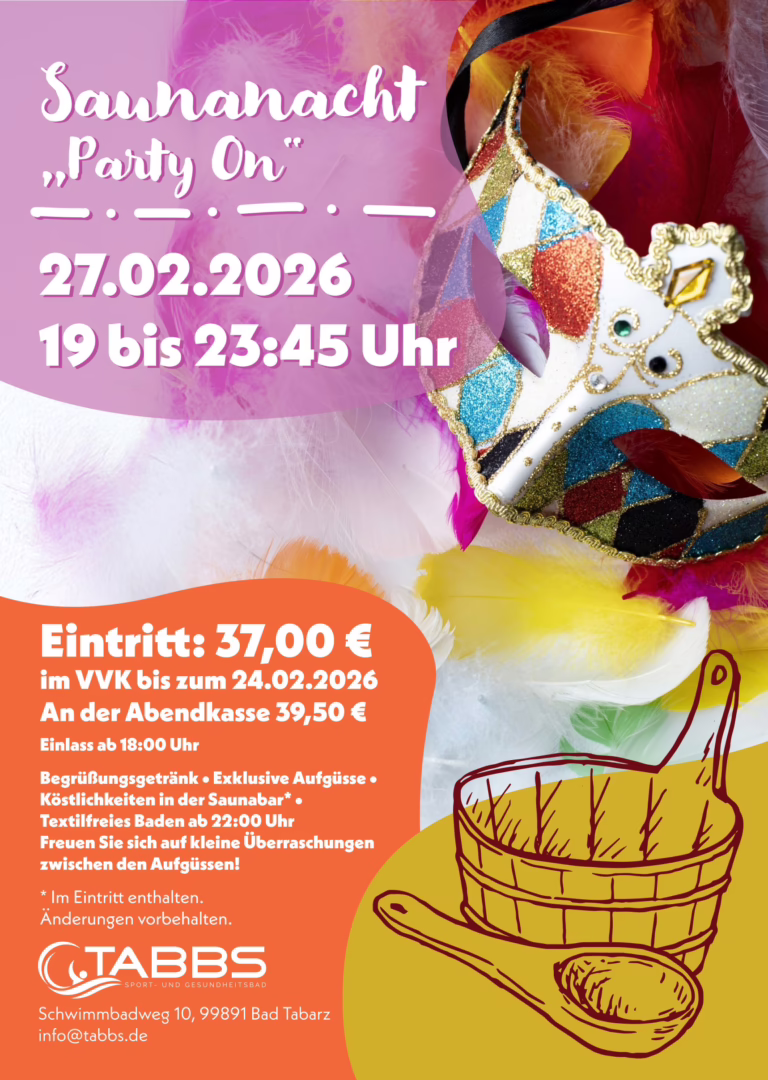 Erleben Sie im TABBS Bad Tabarz eine abwechslungsreiche Auswahl an Veranstaltungen, die Entspannung und Wissen vereinen. Genießen Sie wohltuende Klangschalenkonzerte, exklusive Saunanächte und informative Vorträge zu verschiedenen Gesundheitsthemen – alles in einer entspannten Atmosphäre.